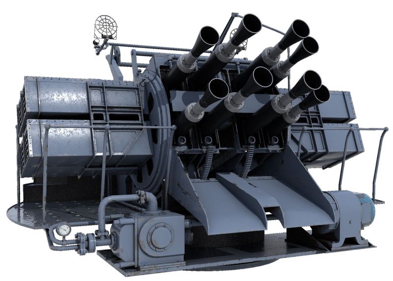 8-lufowy zestaw armat 2-funtowych kal. 40 mm Mark VIII - plany i model 3D.